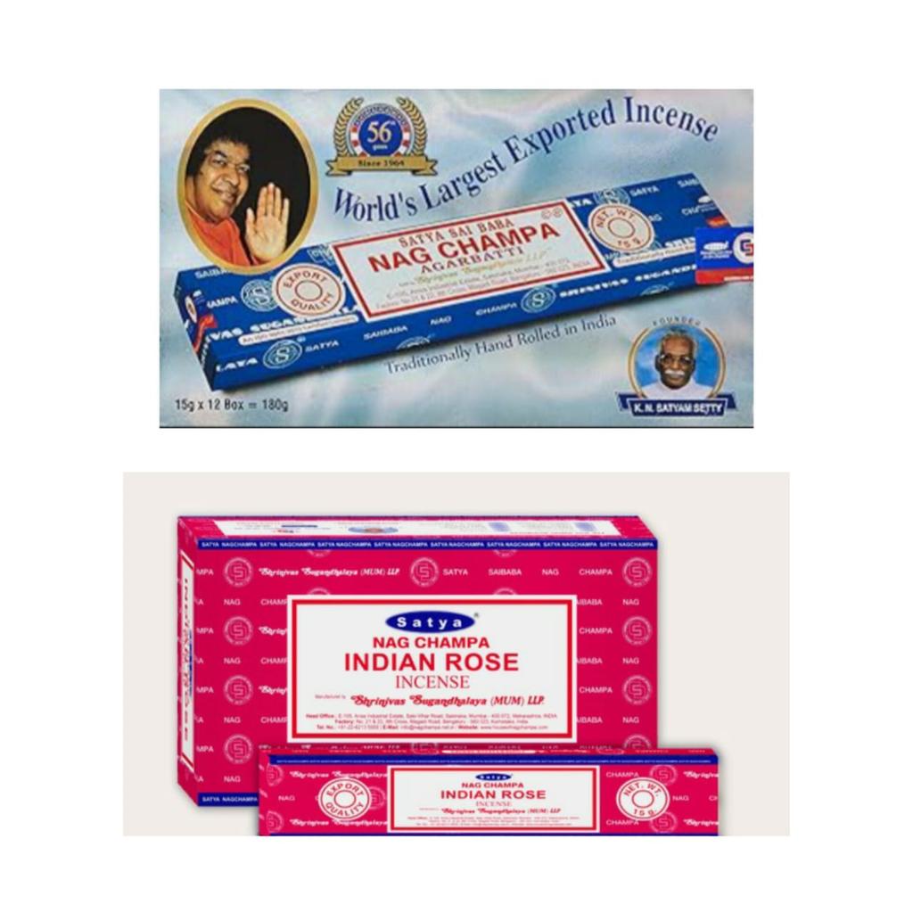 Satya Nag Champa & Indian Rose Incense Sticks Agarbatti 1+1Combo(180 GM+180GM ) Box | 12 Packs of 15 Grams Each In a Box | Export Quality
