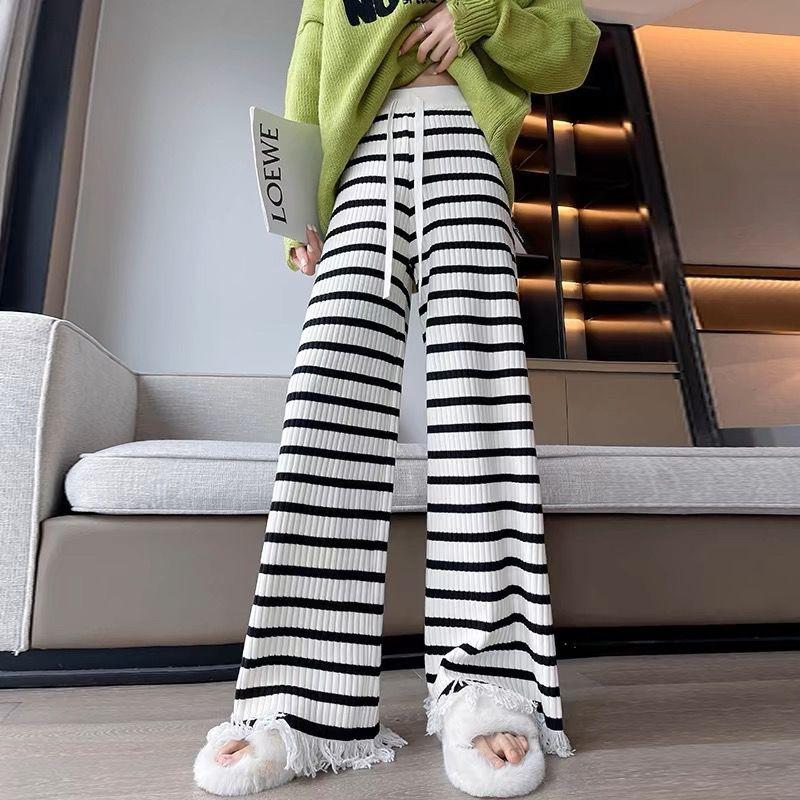 Striped soft knit pants for women in autumn and winter high waisted and wide leg pants straight leg loose casual tassel pants — buy online with free worldwide shipping!