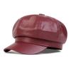 Unisex PU Leather Octagonal Cap Military Hats Flat Top Beret Caps for Women Men Outdoor Sports Cadet Sunscreen Hat