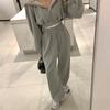 Korean Hooded Cardigan Sweatshirt Set for Petite Women Solid Color Casual Loose Top High Waist Straight Leg Pants Two-piece Set