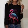 Tops For Women Q-version Flamingo Print Round Neck Long Sleeve T-shirt Fall Casual Slim Pullover Women's Long Sleeve Top — buy online with free worldwide shipping!