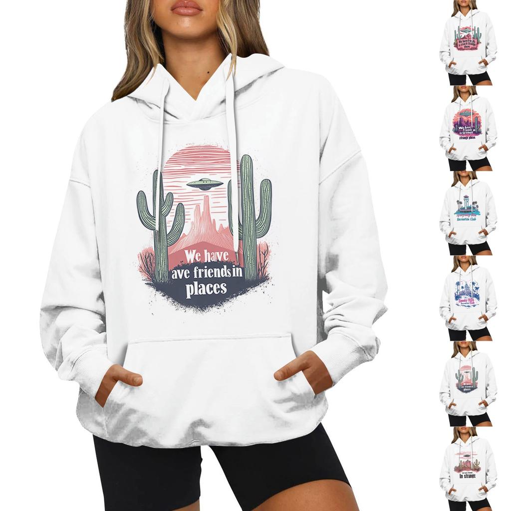 Women's Fashion Casual Long Sleeve Hooded Printed Sweatshirt