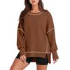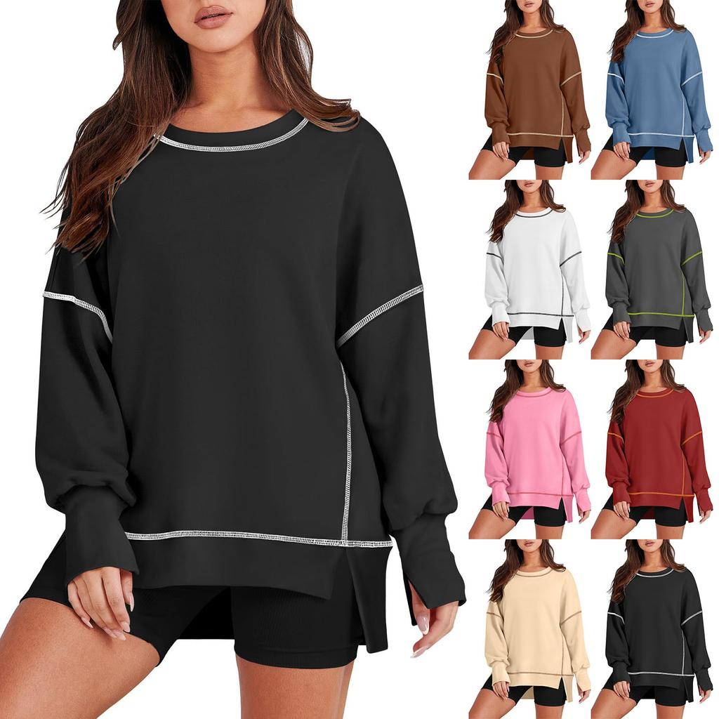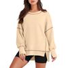 Women's Casual Loose Fitting Pullover Sweatshirt Solid Color Split Stitch Long Sleeved Sweatshirt — buy online with free worldwide shipping!