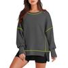 Women's Casual Loose Fitting Pullover Sweatshirt Solid Color Split Stitch Long Sleeved Sweatshirt