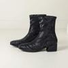 lenkisen PU Autumn Winter Shoes Thick Med Heels Printing Oriental Design Chelsea Boots Keep Warm Patterens Leather Ankle Boots