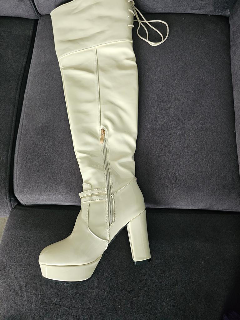 High-Heels Platform Over-the-Knee Boots Women Red White Patent Leather Glossy Buckle Zipper Boot Woman Party Shoes — buy products online with free worldwide shipping!