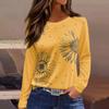 Women's Fashion Casual Slit Hem Round Neck Long Sleeve Loose Printed T-Shirt Ladies Top