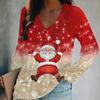 Santa Claus Christmas Tree Print Women Tshirts Ladies Tops Long Sleeve V-neck Pullover Femme T-shirts T Shirt For Women