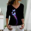 Long Tailed Butterfly Print Women Tshirts Ladies Tops Long Sleeve V-neck Pullover Femme T-shirts T Shirt For Women