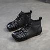 Johnature Retro Short Boots Comfortable Genuine Leather Casual Versatile Woven Women's Shoes