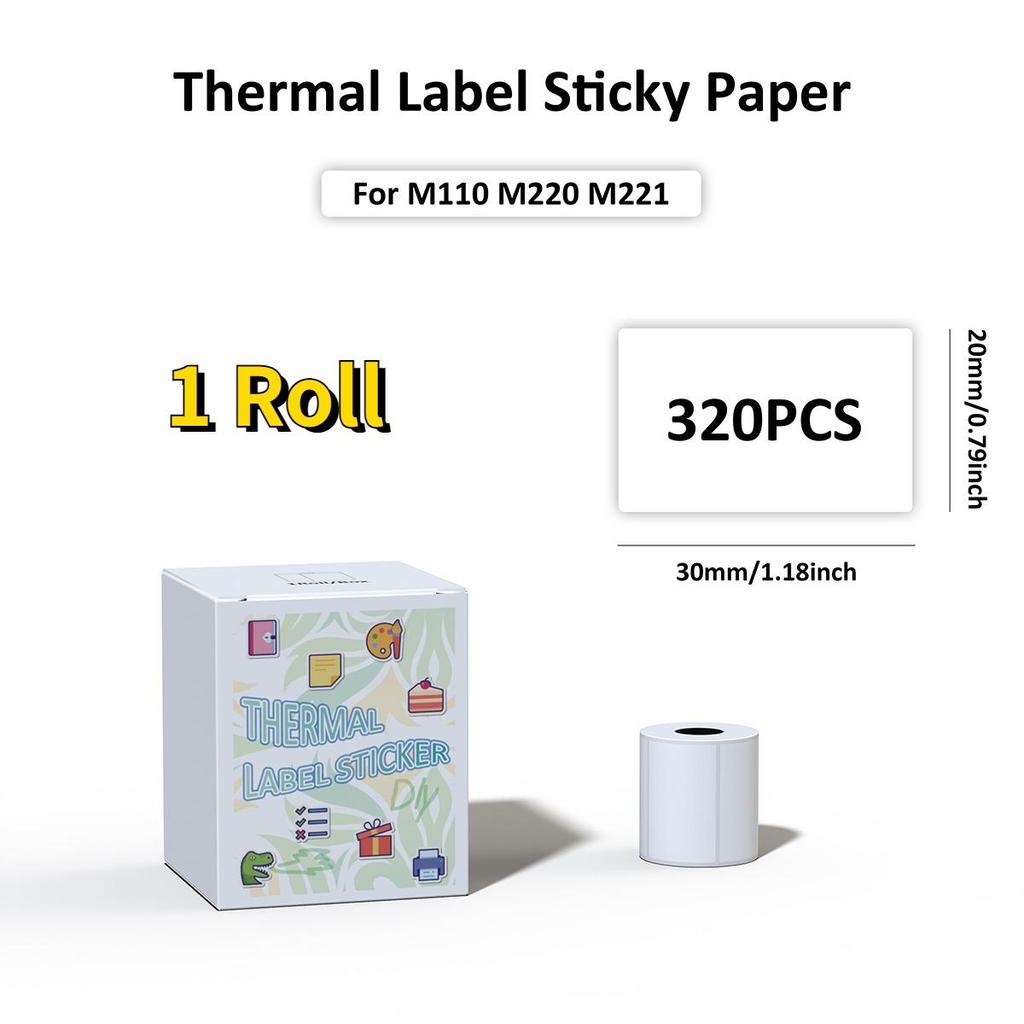 Label Maker Paper, Multi-Purpose 30x20mm Square Self-Adhesive For Mini Label Printer,1.18"x0.79"(30x20mm), 320Labels/Roll, Business Home