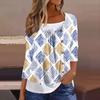 Women's T Shirt Tee Print 3/4 Sleeve Fake Two Pieces Daily Weekend Fashion Basic Regular Top