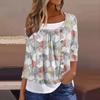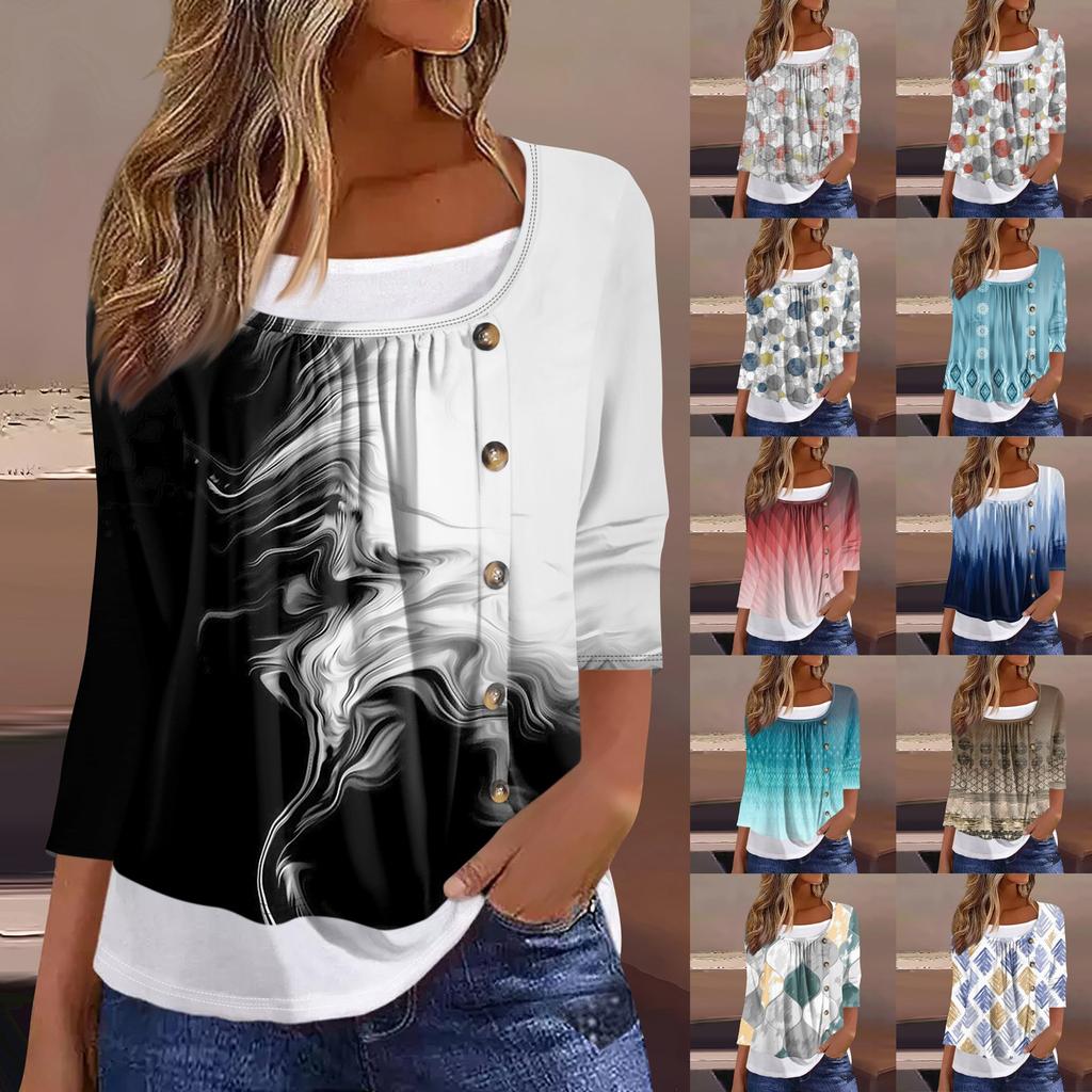 Women's T Shirt Tee Print 3/4 Sleeve Fake Two Pieces Daily Weekend Fashion Basic Regular Top — buy online with free worldwide shipping!