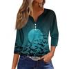 3/4 Length Sleeve Womens Tops Floral Halloween Print Vintage Fashion Casual Loose With V Neck Plus Size Shirts
