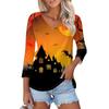 Shirt For Women's Fashion Casual V Neck 3/4 Sleeve Loose Halloween Printed T-Shirt Ladies Top
