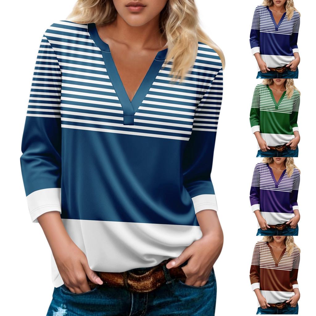 Women's Fashionable And Casual Print V Neck 3/4 Sleeve T Shirt Top Basic V Neck Regular Top — buy products online with free worldwide shipping!
