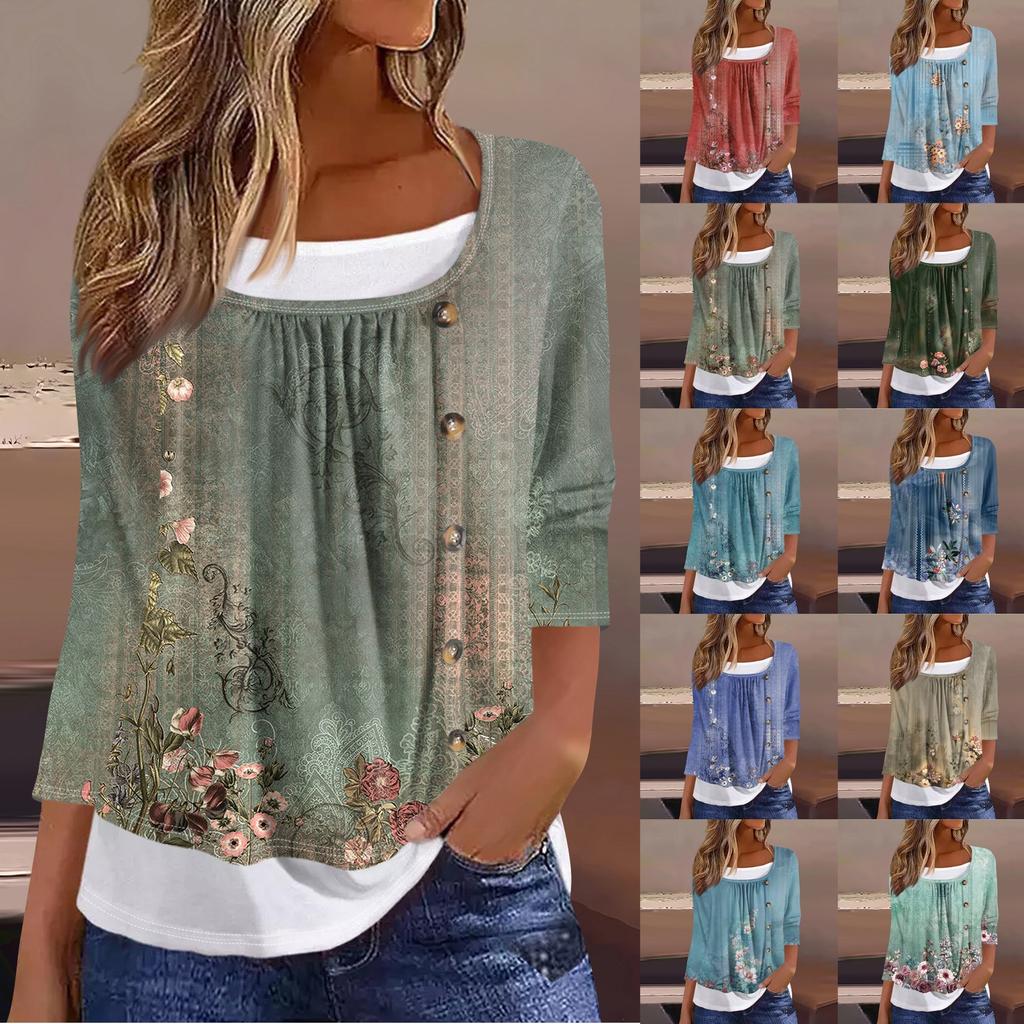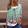 Women's T Shirt Tee Print 3/4 Sleeve Fake Two Pieces Daily Weekend Fashion Basic Regular Top — buy online with free worldwide shipping!