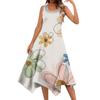 Women's Casual Fashion Round Neck Sleeveless Floral Print Irregular Hem Midi Dress