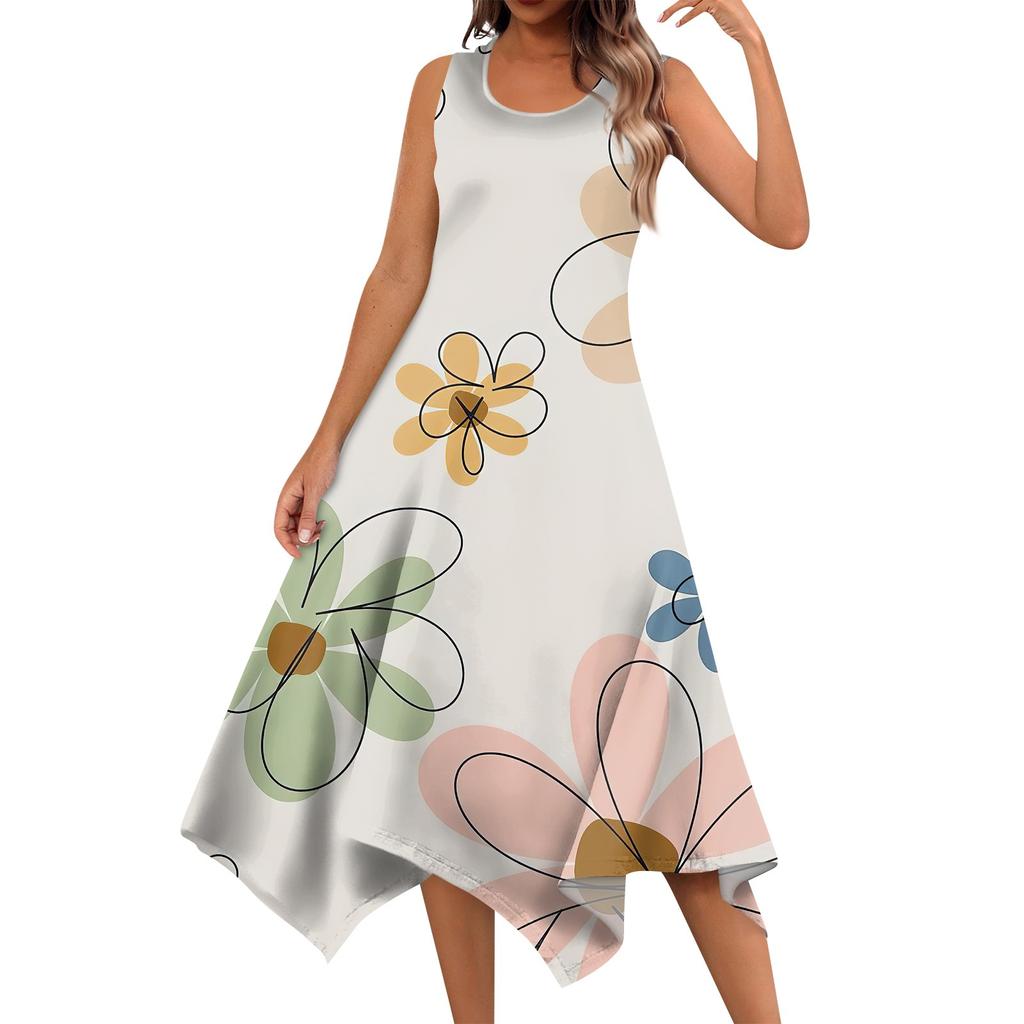 Women's Casual Fashion Round Neck Sleeveless Floral Print Irregular Hem Midi Dress — buy online with free worldwide shipping!
