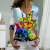 Flowers and Birds Print Women Tshirts Ladies Tops Long Sleeve V-neck Pullover Femme T-shirts T Shirt For Women
