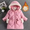 Winter Keep Warm Girls Jacket Solid Long Style Hooded Windbreaker Coat for Kids Children Christmas Outerwear Clothes