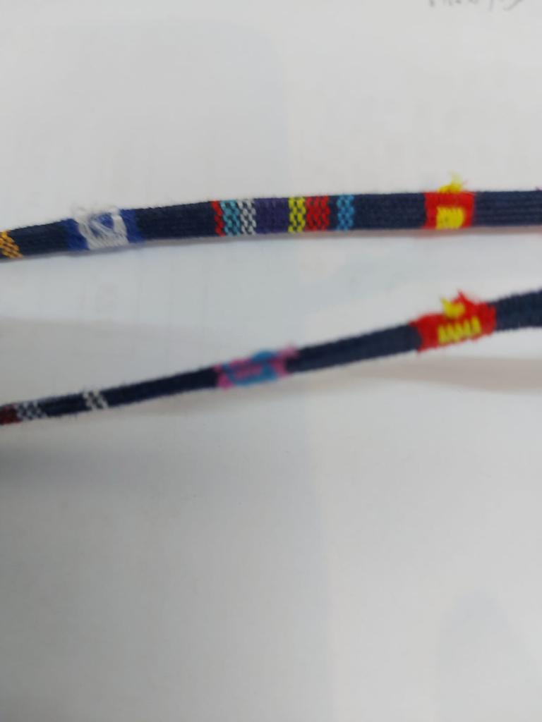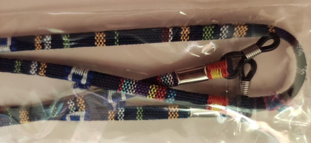 2 eyeglass laces arrived, in different colors. Pretty similar to the picture, but there are some loose threads. See picture. The length is convenient to use.