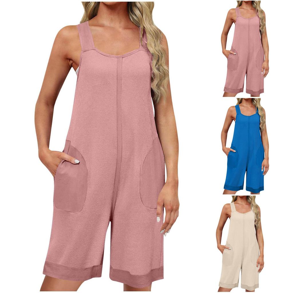 Womens Capris Jumpsuits Casual Summer Square Neck Sleeveless Loose Wide Leg Pants Rompers With Pockets — buy online with free worldwide shipping!