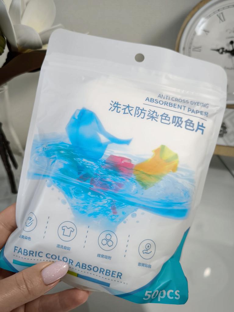 These color absorbent laundry sheets are a real discovery! 🥰 I just add them to the washing machine drum along with my colored laundry, and I don’t have to worry about my clothes fading. ✨ The napkins perfectly absorb excess paint, preventing the colors from mixing. 👍 Even after washing new items, the color remains just as bright, and white laundry does not acquire unwanted shades. 🤗 This is especially convenient if you need to wash clothes of different colors in one load. Saves time and eliminates unnecessary hassle when sorting things. I recommend!