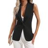 Women's Fashion Solid Color Cardigan Single Button Jacket Sleeveless Round Neck Coat