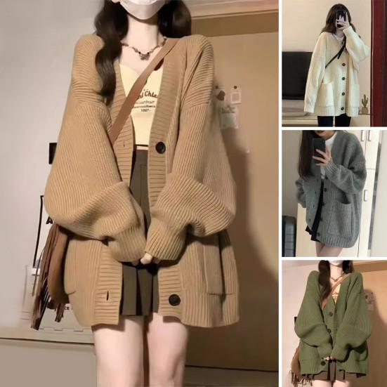 One Size Fits All: Embrace the casual elegance of this solid-colored cardigan designed to fit all sizes comfortably while offering a loose and relaxed silhouette.