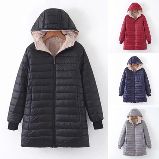Stylish Mid-Length Design: Elevate your wardrobe with this women's cotton coat featuring a mid-length cut, hooded silhouette, and full zipper closure. Effortlessly blend fashion and function in a solid color, simple yet fashionable style that exudes versatility.
