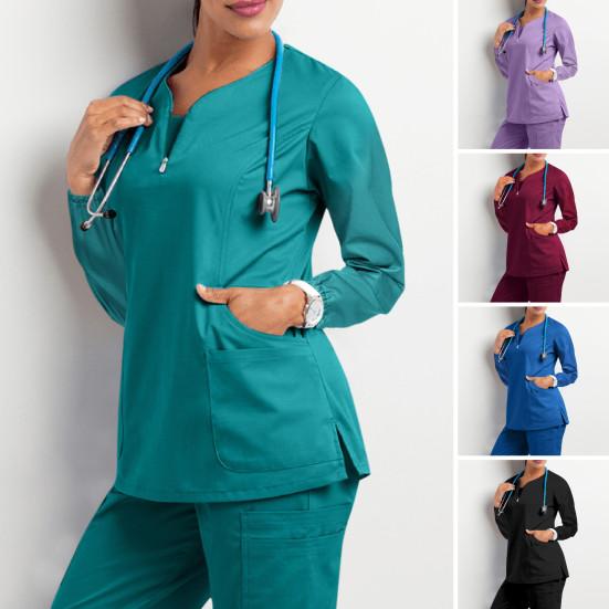 Enhanced Storage Solution: Featuring 4 spacious pockets, including a zipper pocket and a slit at the hem, this medical uniform offers ample storage space for all your essentials, ensuring you can carry everything you need with ease.