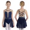 Kids Girls Ballet Lyrical Dance Figure Ice Skating Dress Hollow Back Mesh Gymnastics Leotard Dress