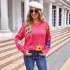 Autumn and Winter Women's Pullover Long Sleeve Floral Sweater Big Size Loose Round Neck Sweater