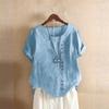 Women's Fashion Casual Temperament Round Neck Vintage Cotton And Hemp Solid Button Short Sleeve T-Shirt Top