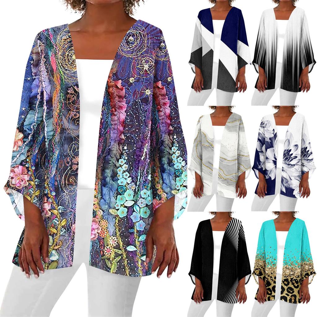 Women's Casual Fashion Caot Retro Printed Lightweight Medium Length Jacket Cardigan
