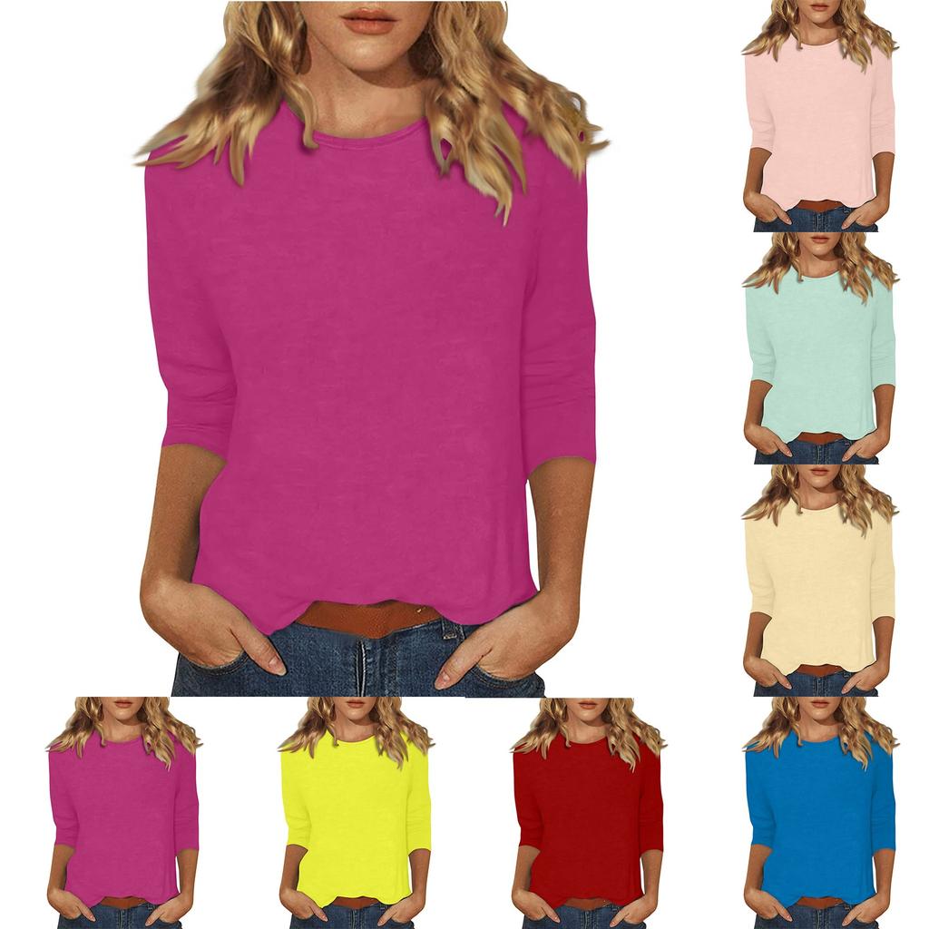 Women's Casual O-Neck Three Quarter Sleeve Solid Color Top — buy online with free worldwide shipping!