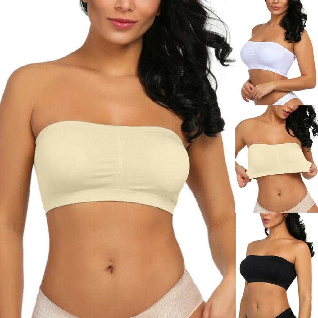 Double Women Plus Size Strapless Bra Bandeau Tube Removable Padded Top Stretchy — buy online with free worldwide shipping!