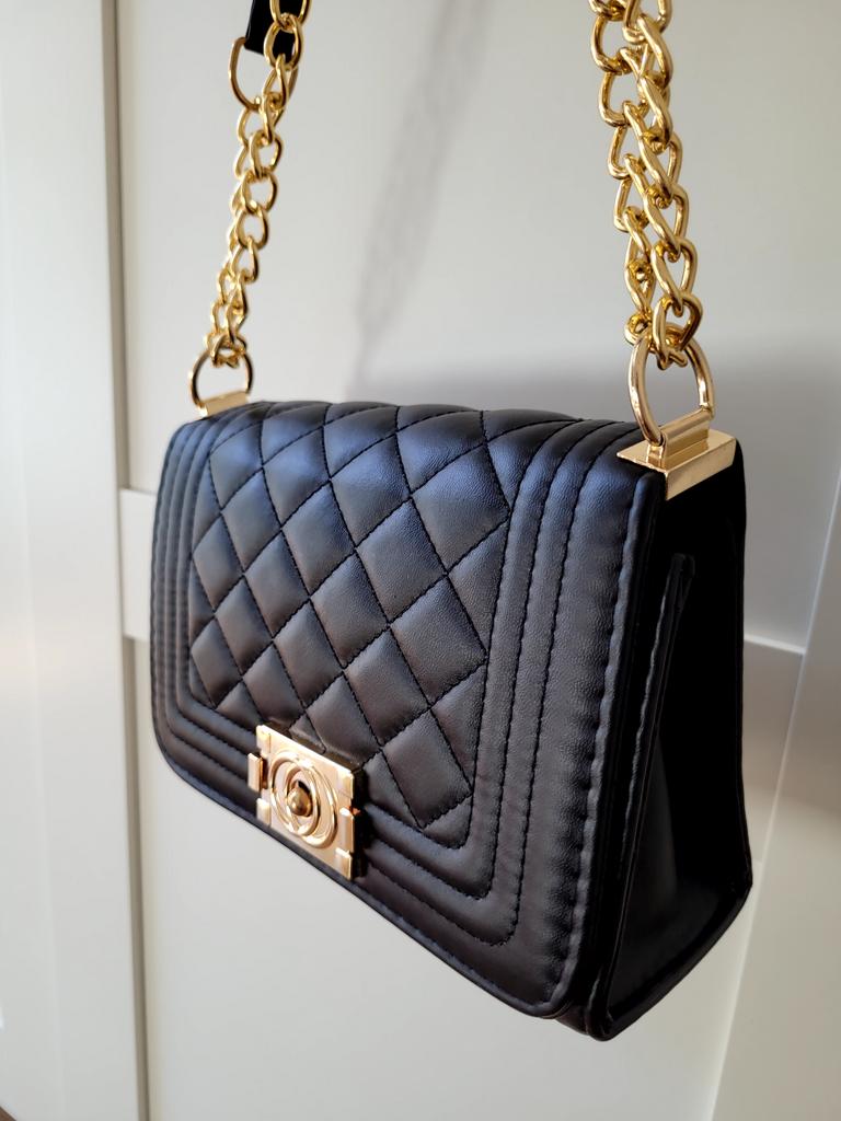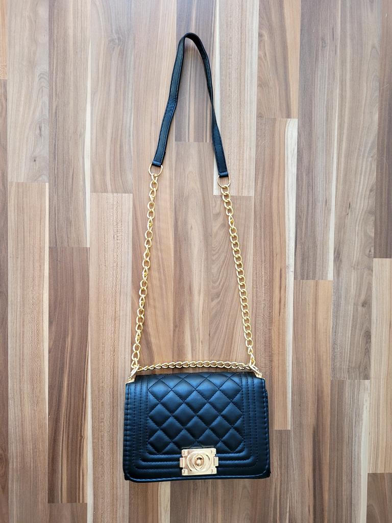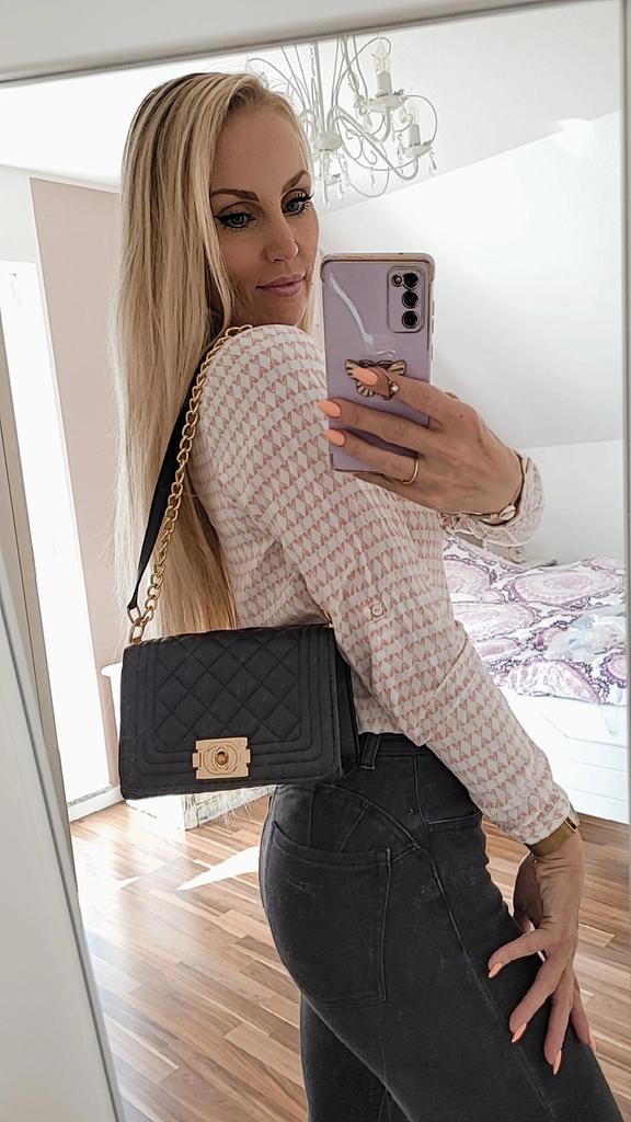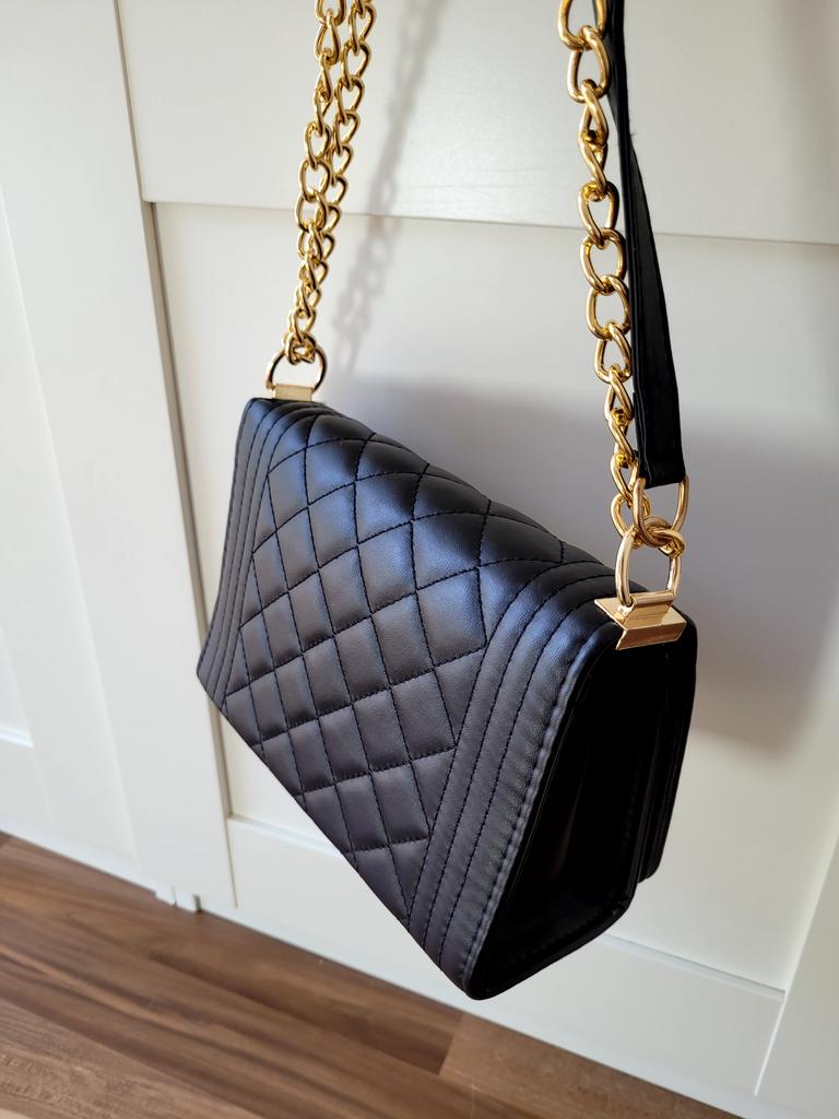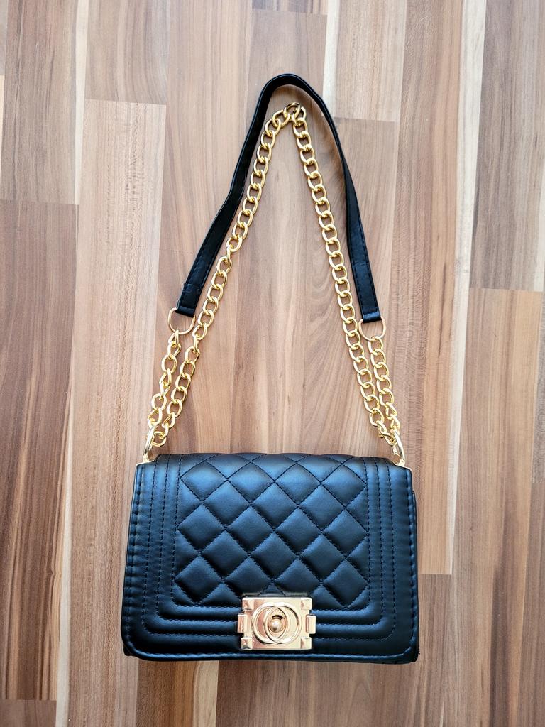 * Honeycomb handbag with flower emblem * 💥𝗟𝗶𝗲𝗳𝗲𝗿𝘇𝗲𝗶𝘁 1 month 💥𝗟𝗶𝗲𝗳𝗲𝗿𝘂𝗺𝗳𝗮𝗻𝗴 The delivery includes 1 handbag in the corresponding color and size. The handbag is available in one size in many different designs I ordered the handbag in black and gold. 💥𝗤𝘂𝗮𝗹𝗶𝘁ä𝘁 I really like the handbag, it is well made, there are no glue residues visible and the handbag also looks really good. It can be worn as a shoulder bag or diagonally across the chest...with a strap made of link chain elements. This shoulder strap could theoretically also be worn shorter. The handbag has a large compartment that can be opened and closed with a snap fastener. Inside, the handbag is divided into 3 further compartments, one of which can also be closed with a zipper. I especially like that you can wear the bag short or long. For material composition : I polyurethane, but I didn't find a label. 💥𝗙𝗮𝘇𝗶𝘁 Mega beautiful handbag that can be combined with both a casual jeans outfit and an elegant dress. It enhances every outfit...👌