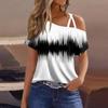 Women's Fashion Casual Print Sexy Cold Shoulder Short Sleeve T-shirt Top