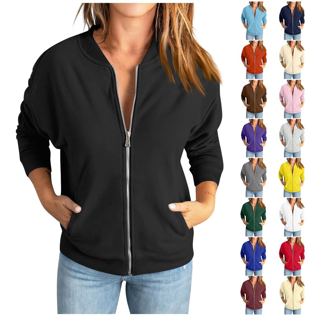 Women's Casual Sweatshirt Solid Color Zipper Jacket Long Sleeve Loose Coat With Pocket