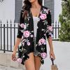 Women's Fall Print Irregular Three-quarter Sleeve Cardigan With Pocket Jacket