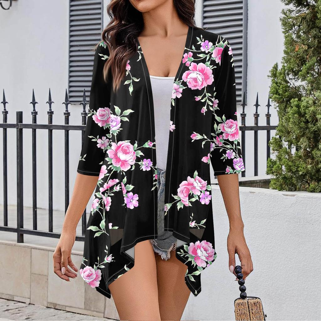 Women's Fall Print Irregular Three-quarter Sleeve Cardigan With Pocket Jacket — buy online with free worldwide shipping!