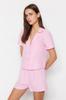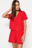 Women's Fashion Green Terrycotton Shirt-Shorts Woven Pajama Set