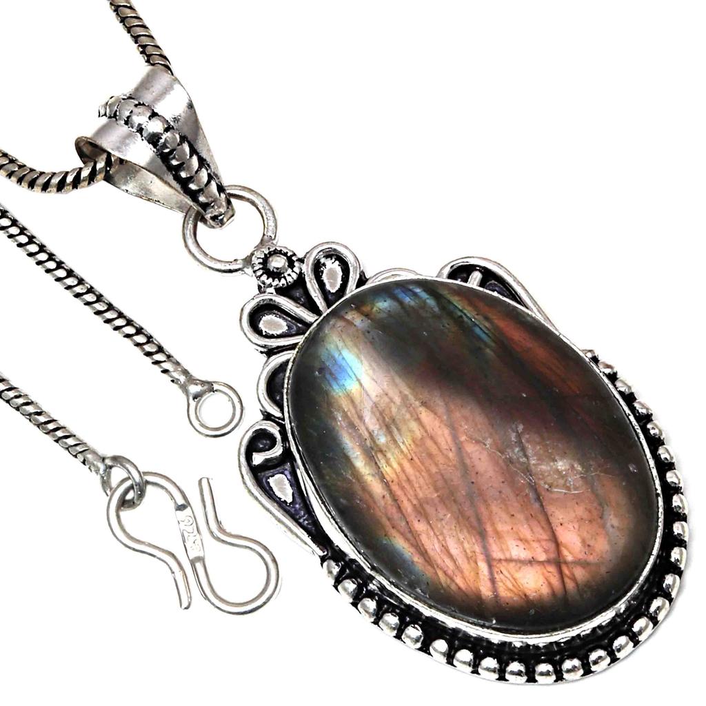 Pendant Multi Fire Labradorite Gemstone Valentine'Day Silver Jewelry 2.25"