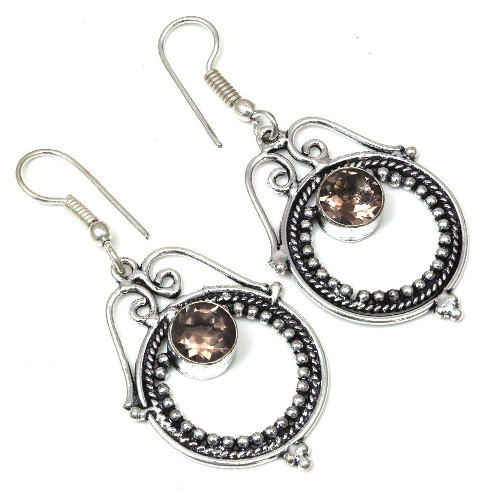 Smoky Quartz Gemstone Handmade Silver Jewelry Earrings 1.5''
