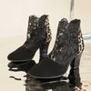 Leopard Print Color Blocked High Heels for Women with Mesh and Back Zipper, Thick Heels and Round Toe for Women