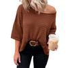 Women's Fashionable Sweater Solid Color Round Neck Off Shoulder Loose Knit Sweater