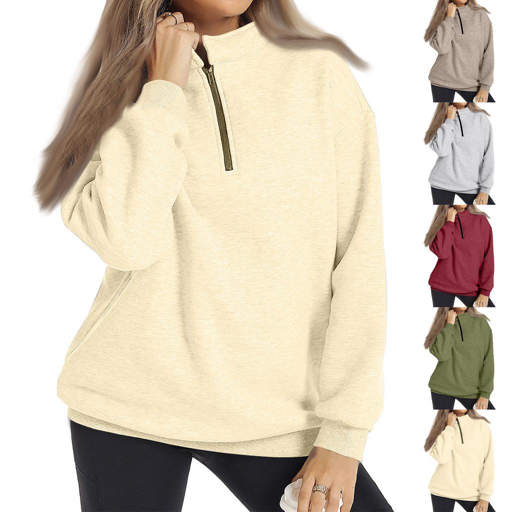 Women's Half Zipper Long Sleeve Sweater Pullover Solid Color Loose Casual Sports Sweater — buy online with free worldwide shipping!