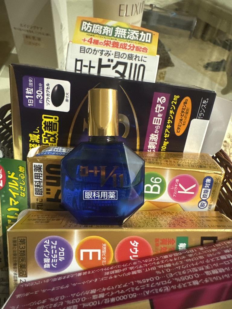 Rohto V11 is an eye drop specifically formulated to relieve eye fatigue from intense usage, even when you can't take a break. With a focus on both effectiveness and comfort, its 11 active ingredients work effectively to alleviate eye fatigue, itching, and redness. It includes a balanced mix of 4 nutrients—**Vitamin B6, d-alpha-Tocopherol acetate, L-aspartic acid potassium, and Taurine**—and 3 anti-inflammatory agents—**Allantoin, Zinc sulfate hydrate, and Glycyrrhizin dipotassium**. This eye drop provides a refreshing sensation, making it ideal for when your eyes feel tired and need a quick refresh.